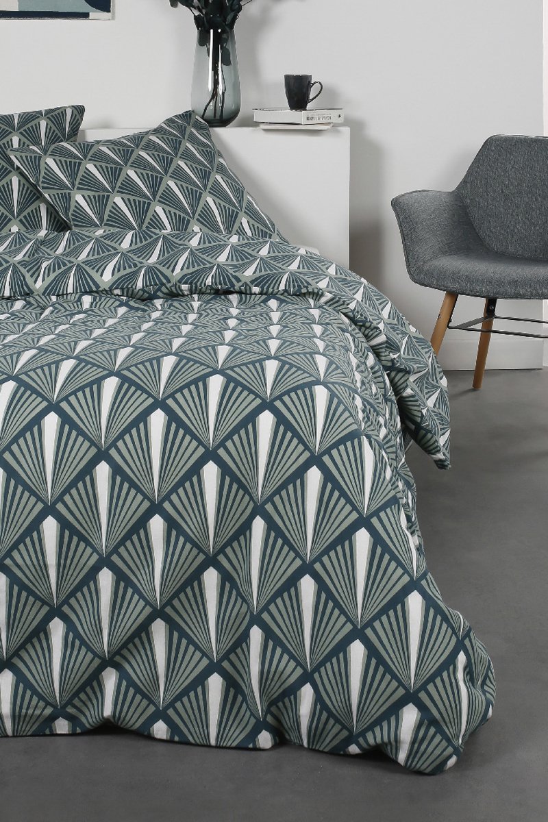 Juego de nórdico de algodón Flanelle - Verde y crudo