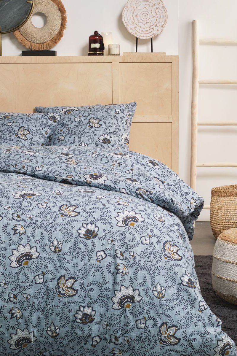 Juego de nórdico de algodón Flanelle - Azul y crudo