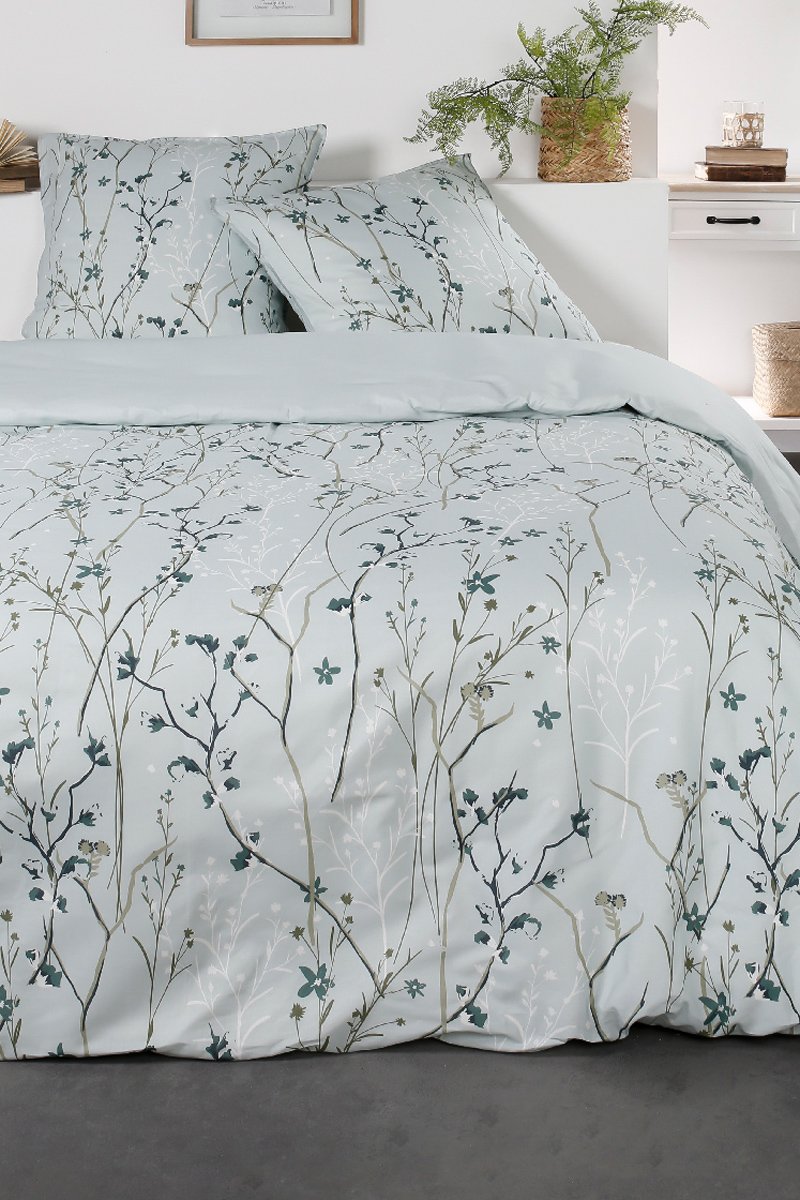 Juego de nórdico de algodón 57 hilos/cm² Sunshine - Verde agua y caqui