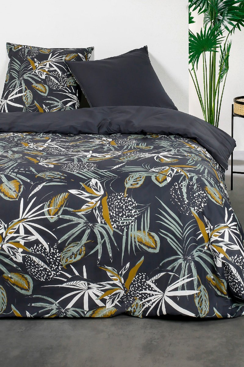 Juego de nórdico de algodón 57 hilos/cm² Sunshine - Antracita y ocre
