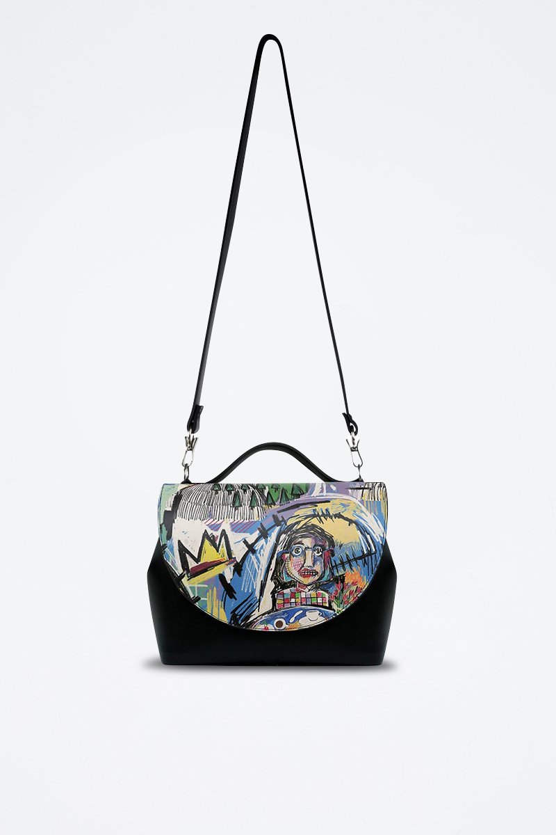 Cierre de solapa magnética con estampado de fantasía y detalles de metal.