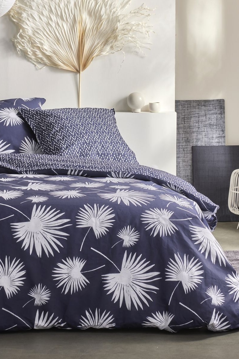 Juego de nórdico reversible de algodón - 57 hilos/cm² - Azul marino