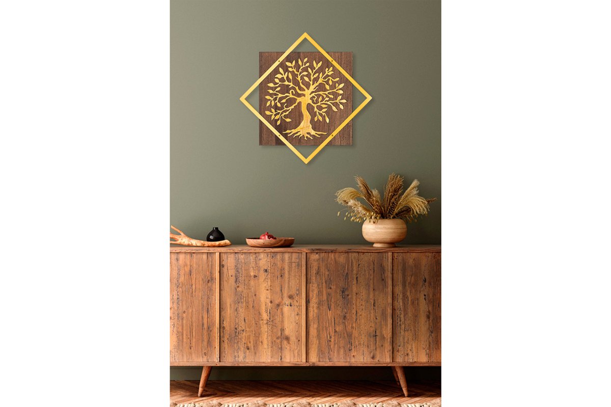 Adorno mural - Natural y dorado