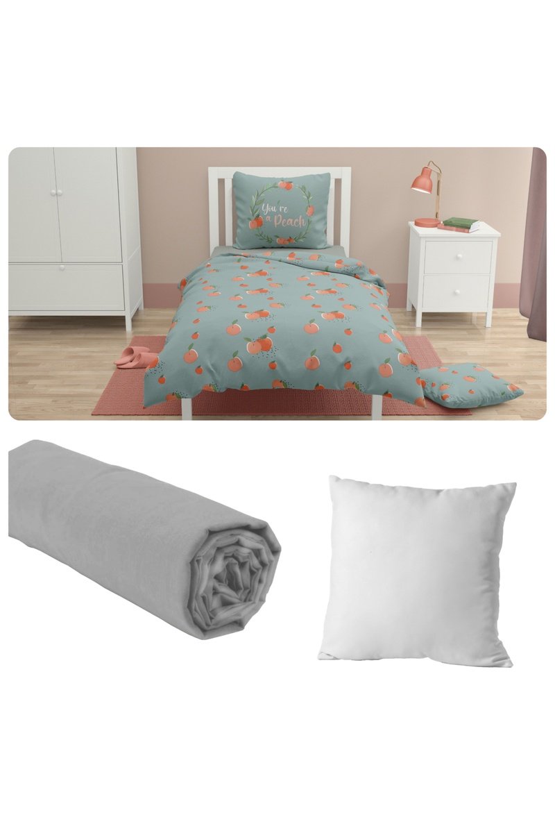Juego de nórdico y sábana bajera de algodón 57 hilos/cm² con almohada Peachy - Salvia y naranja