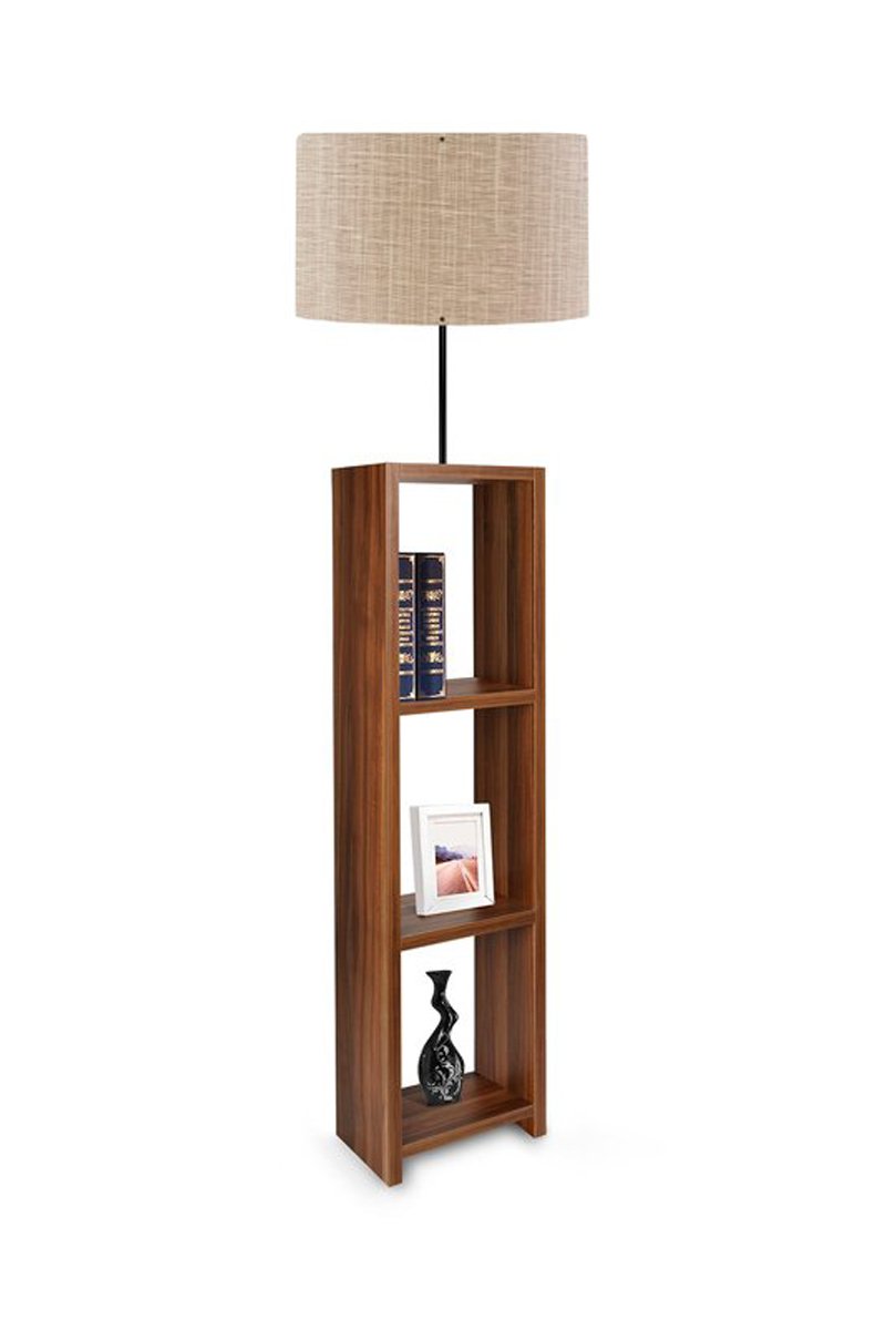 Lámpara de pie con estantería.