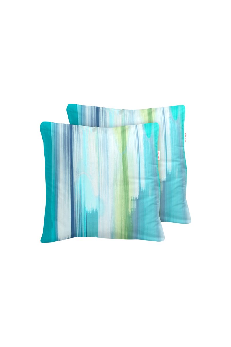 2 fundas de almohada de algodón 57 hilos/cm² Loane - Azul lago y verde claro