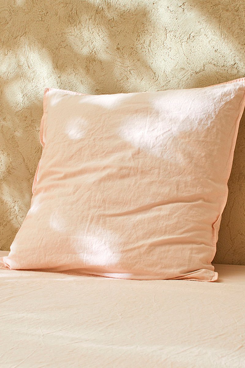 2 fundas de almohada de lino y algodón orgánico 79 hilos/cm² Liso Lo - Rosa pastel