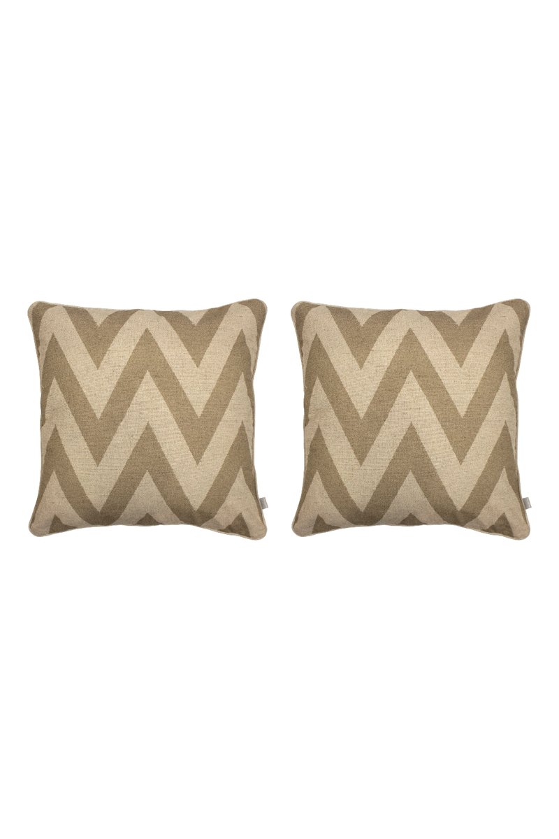 2 fundas de cojín de lino Meena - Beige y marrón - 50 x 50 cm