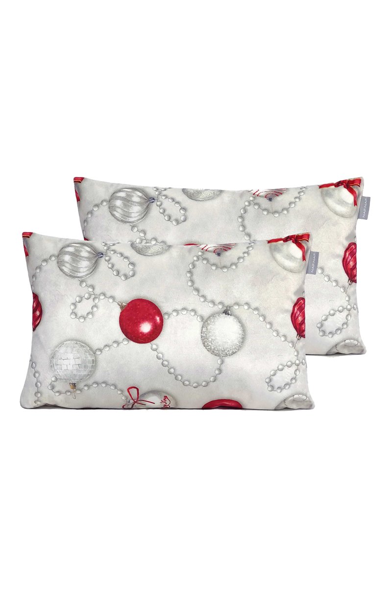 2 fundas de cojín de terciopelo Xmas days - Gris y rojo - 30 x 50 cm