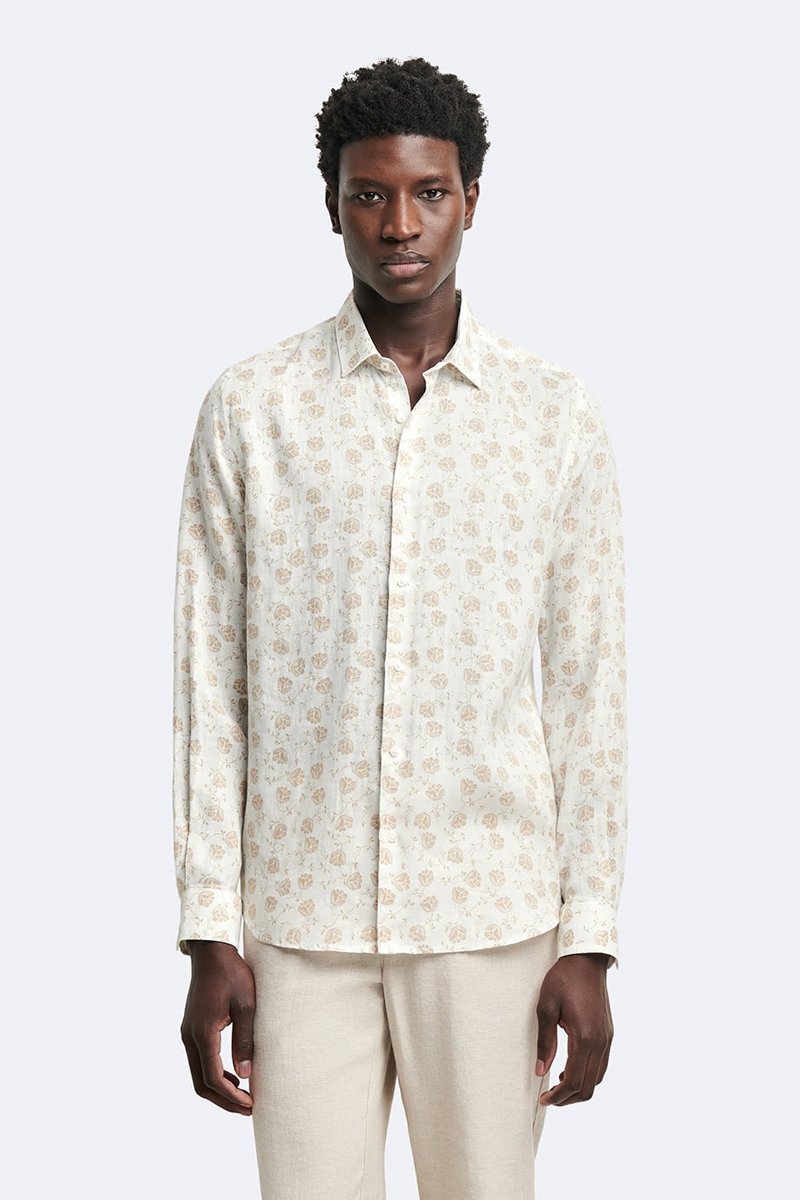 Camisa slim fit de lino - Marfil