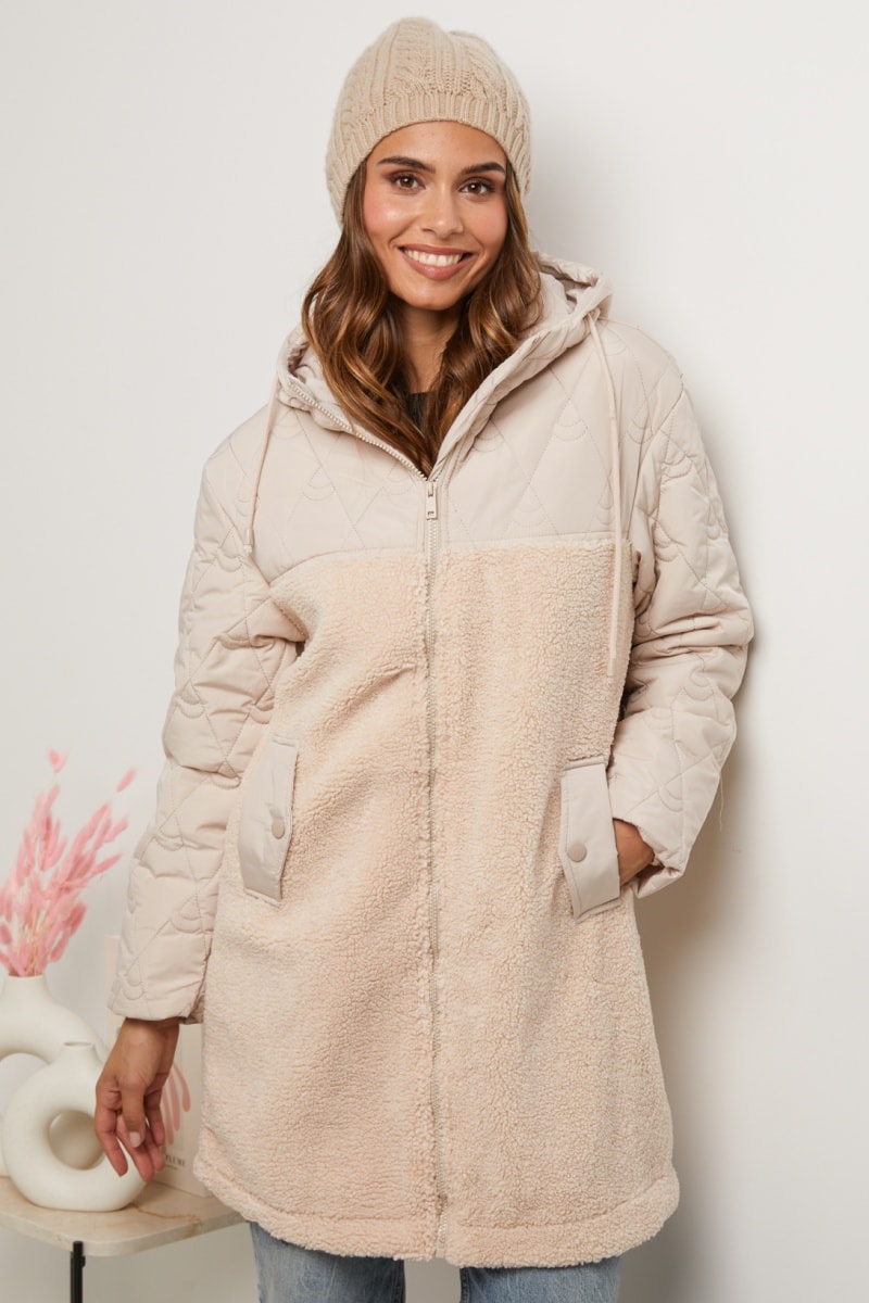 Efecto acolchado en la capucha, las mangas, delante y detrás.