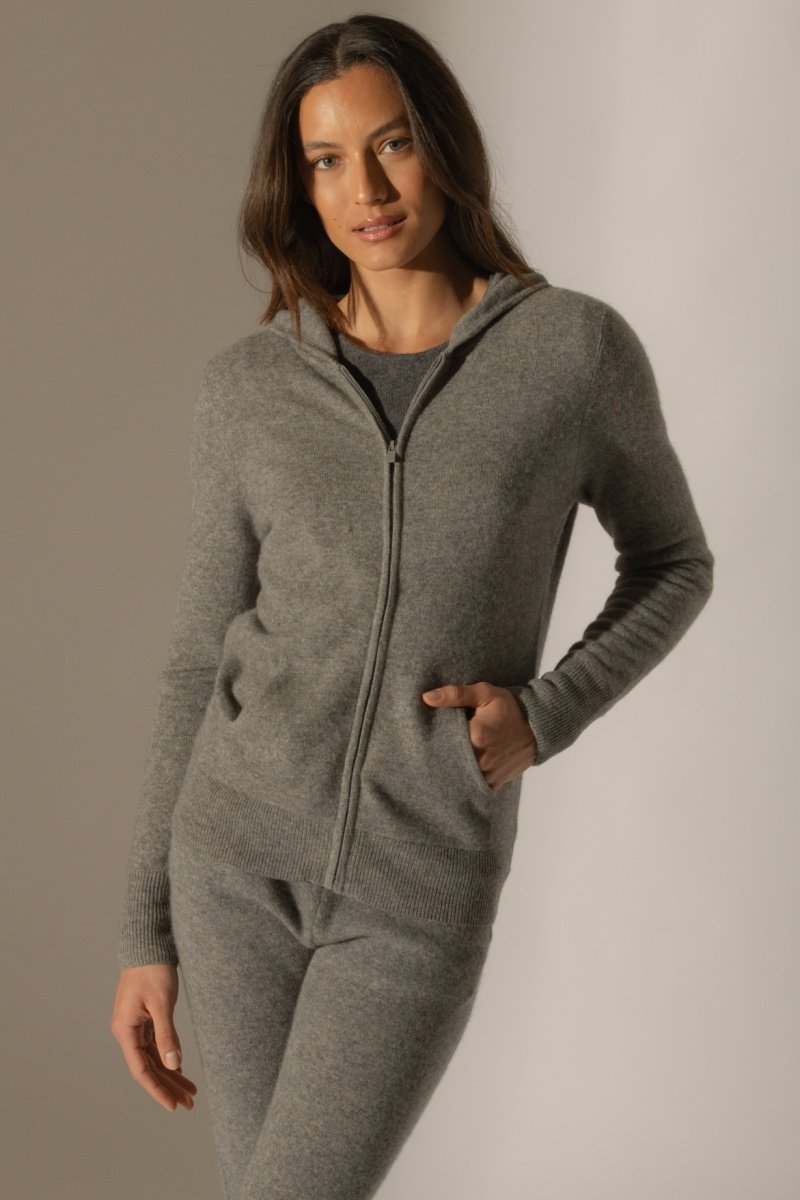 Cárdigan con capucha Emma 100 % cachemir - Franela jaspeada