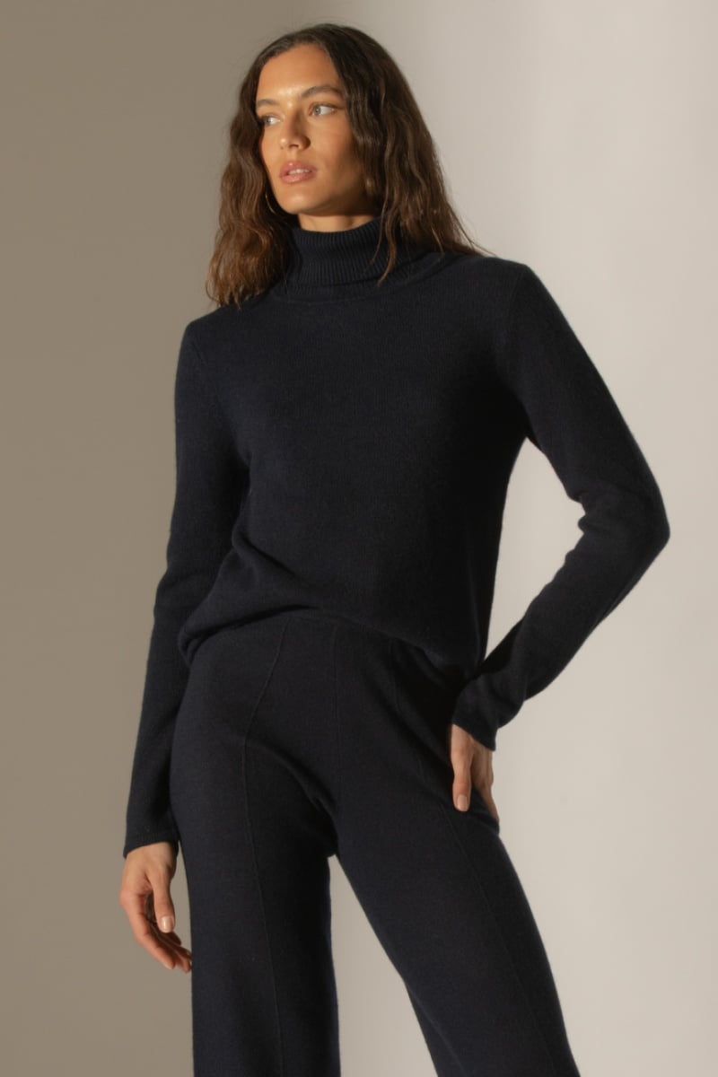 Jersey Willow 100 % cachemir, 4 hilos - Cuello vuelto - Azul marino, 267 g