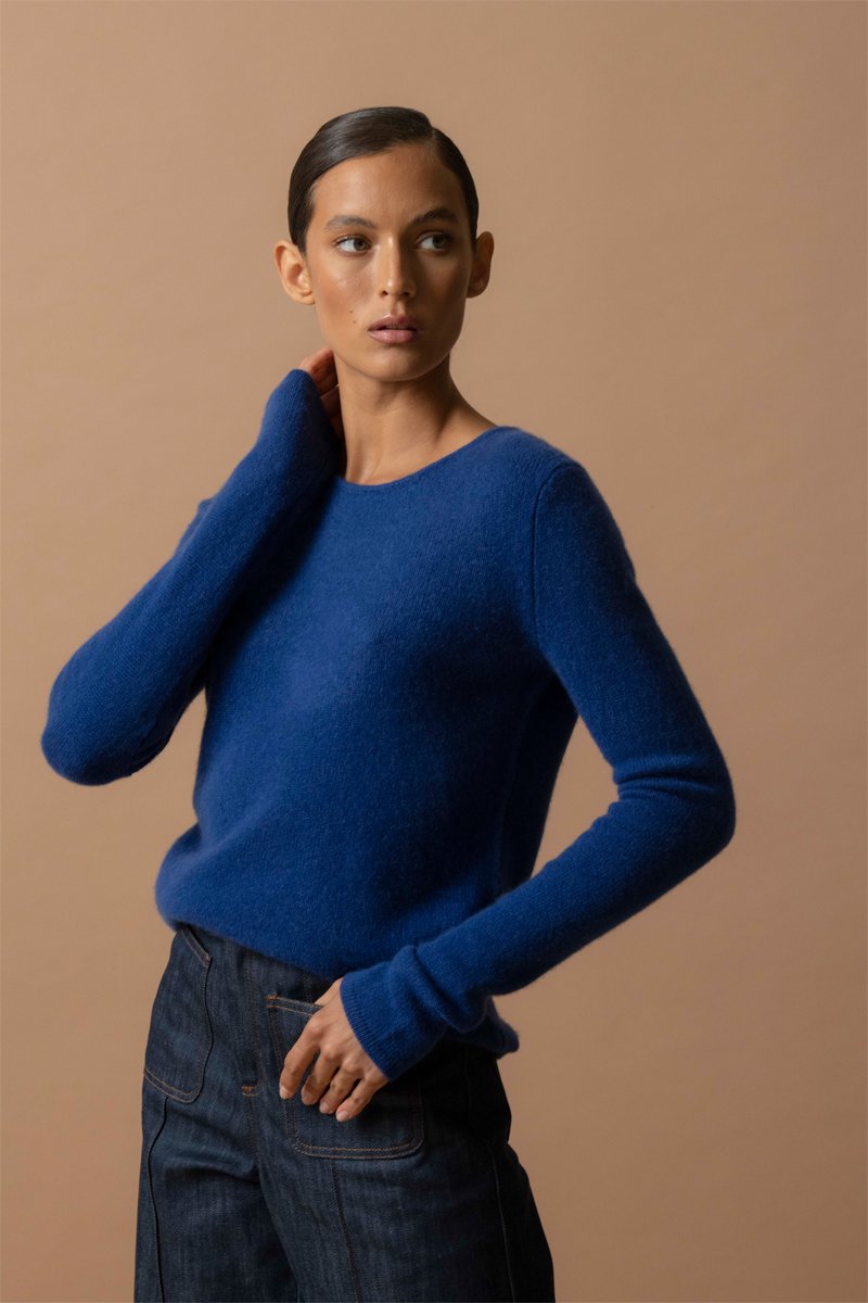 Jersey Marya - 100 % cachemir 4 hilos - Cuello redondo - Azul ultramar