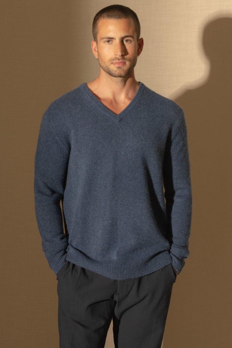 Jersey Enzo 100 % cachemir, 4 hilos - Cuello de pico - Océano jaspeado