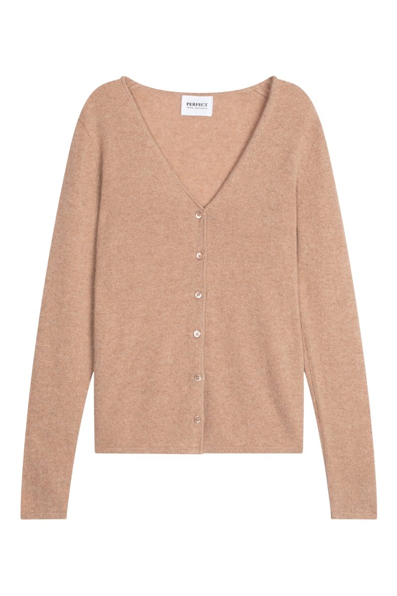 Cárdigan 100 % cachemir - 2 hilos - Cuello de pico - Camel