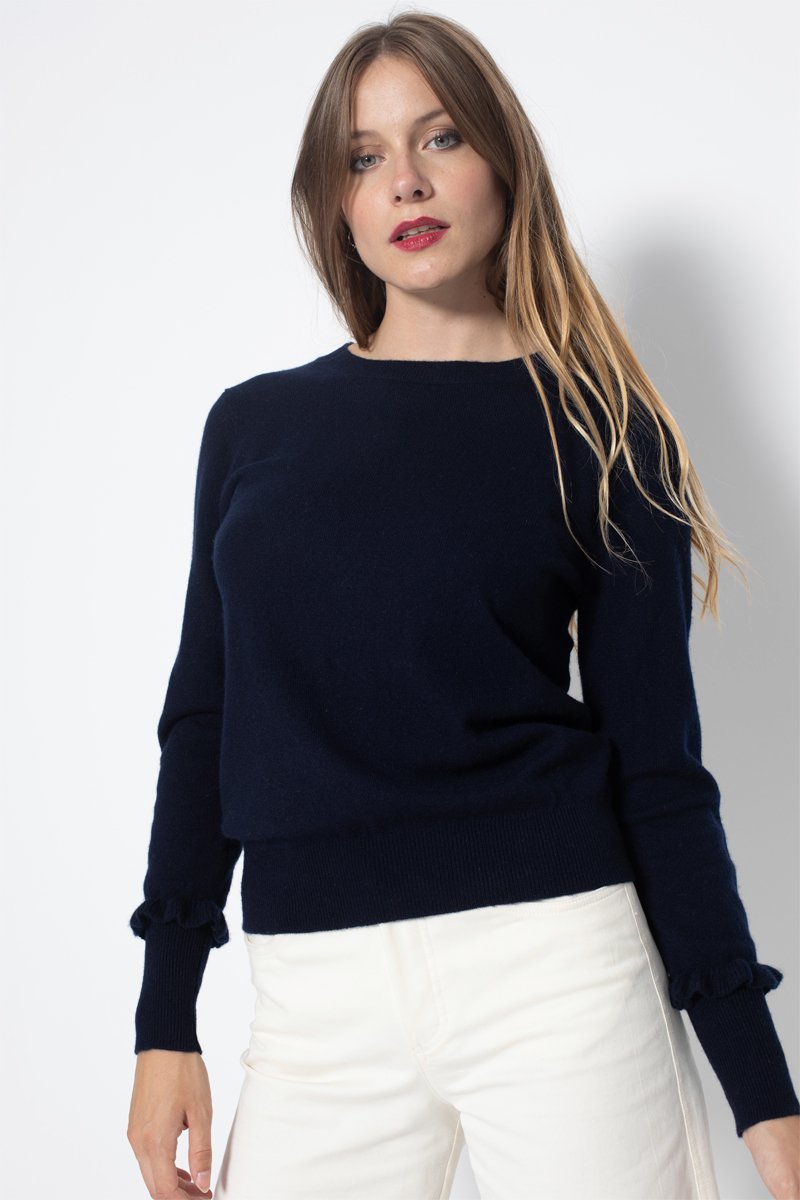 Jersey Luing 100 % cachemir, 2 hilos - Cuello redondo - Azul marino