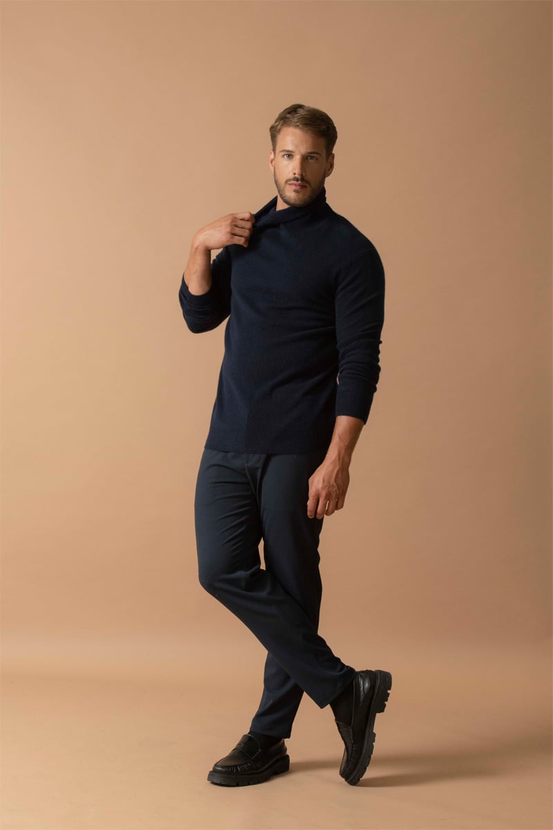Jersey Trevor - 100 % cachemir 2 hilos - Cuello vuelto - Azul marino