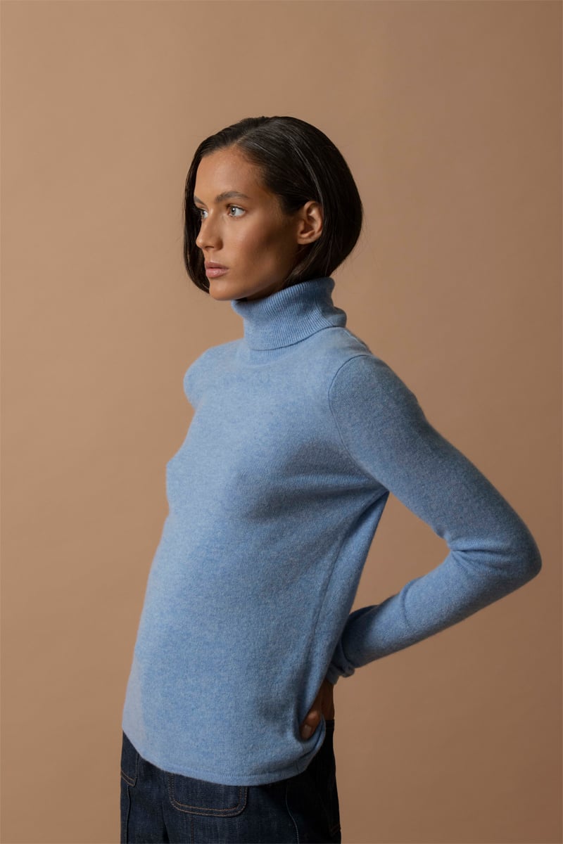 Jersey Ashley - 100 % cachemir 2 hilos - Cuello vuelto - Celeste