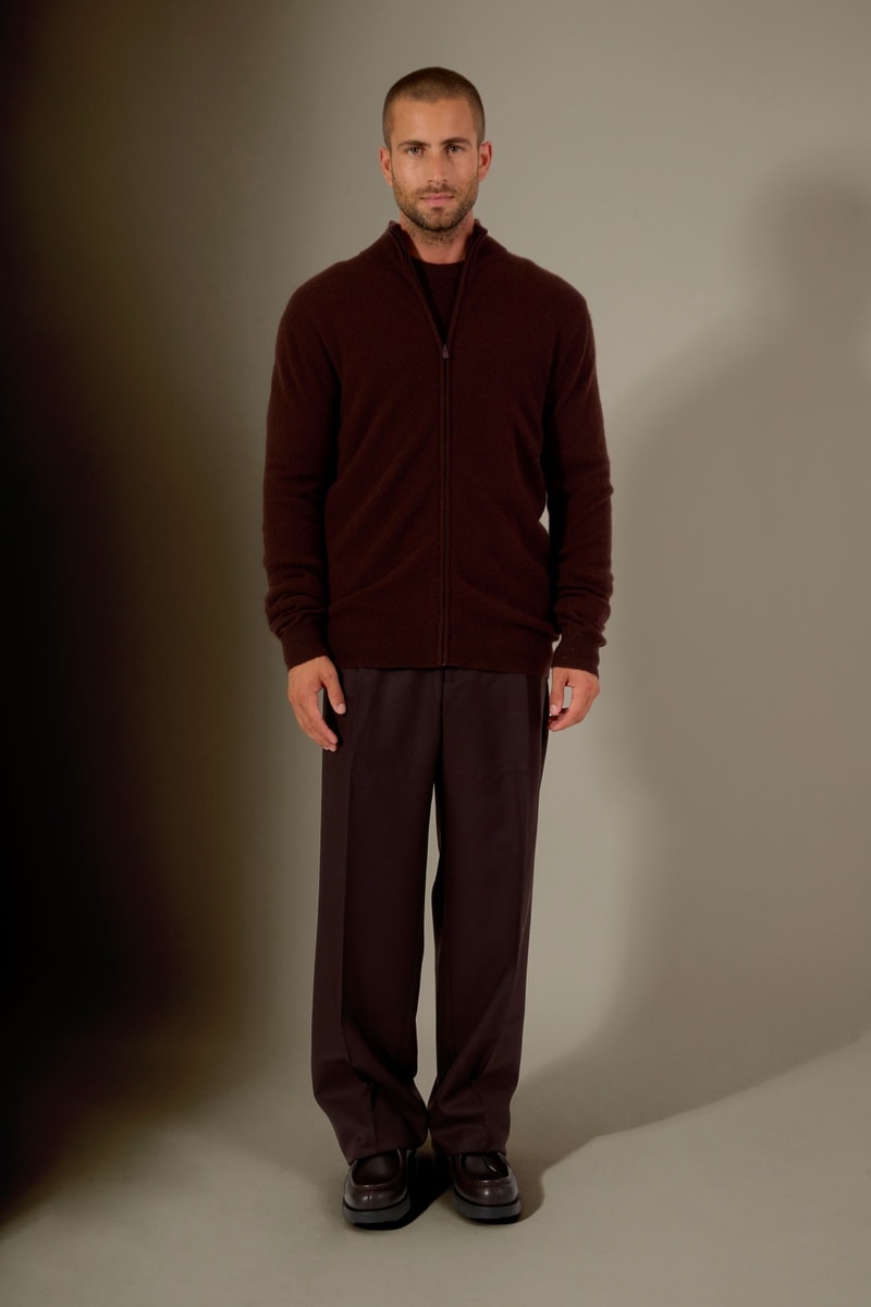 Cárdigan con capucha 100 % cachemir - Cuello alto - Marrón