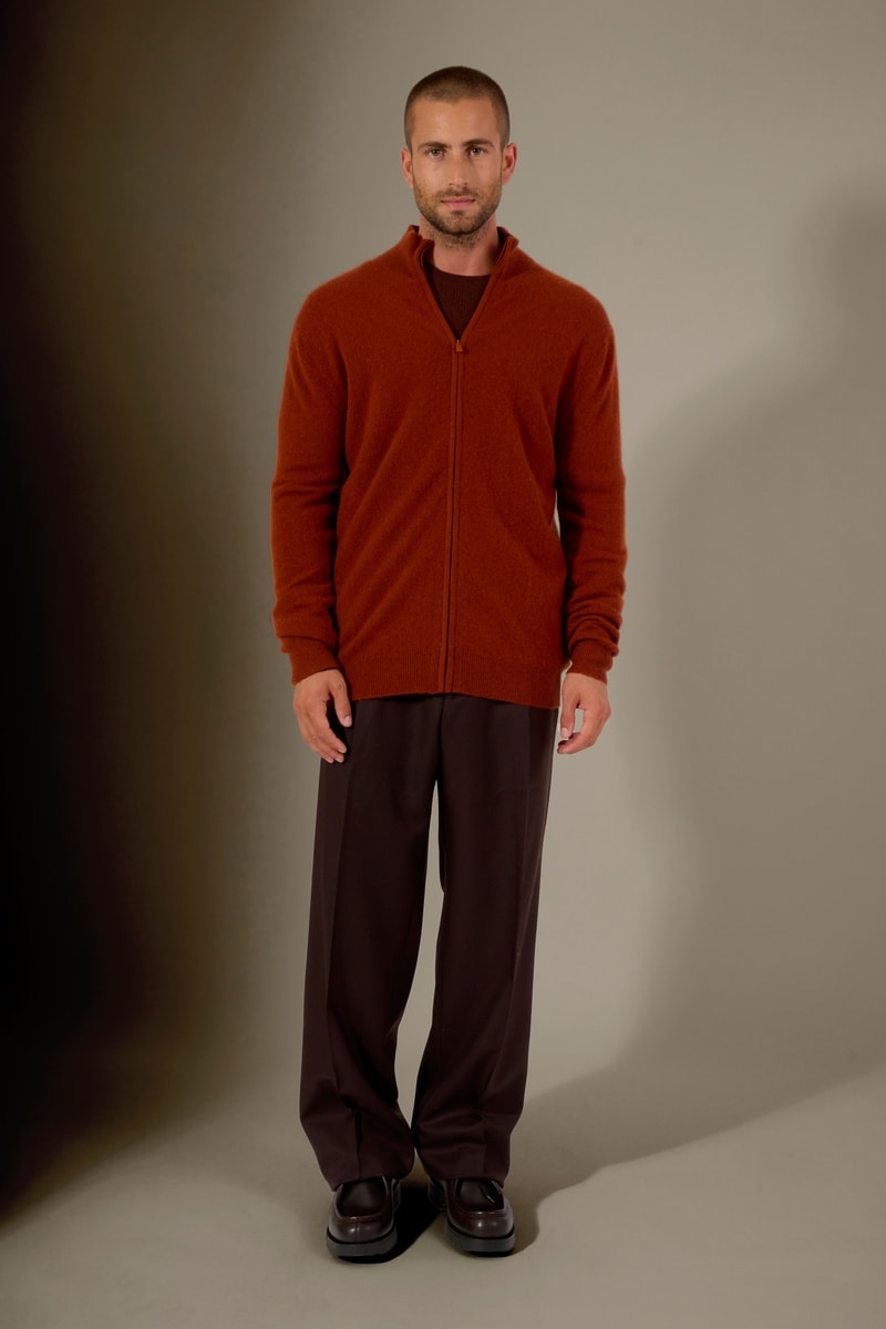 Cárdigan 100 % cachemir - Cuello alto - Rojizo