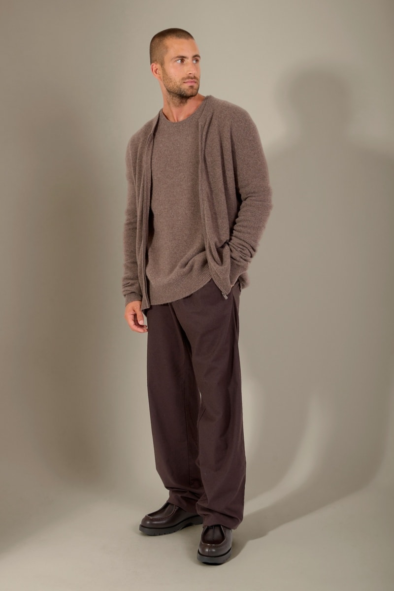 Cárdigan 100 % cachemir - Cuello alto - Topo