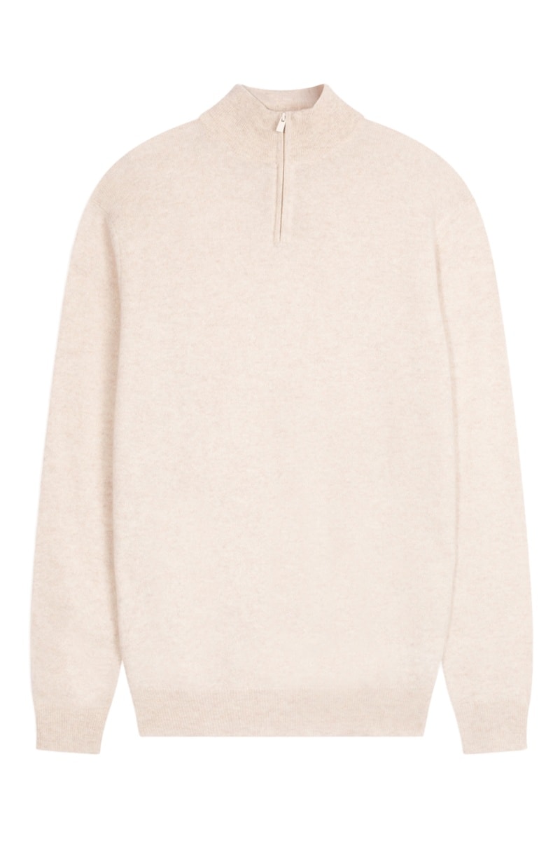 Jersey - 100 % cachemir - Cuello alto con cremallera - Beige