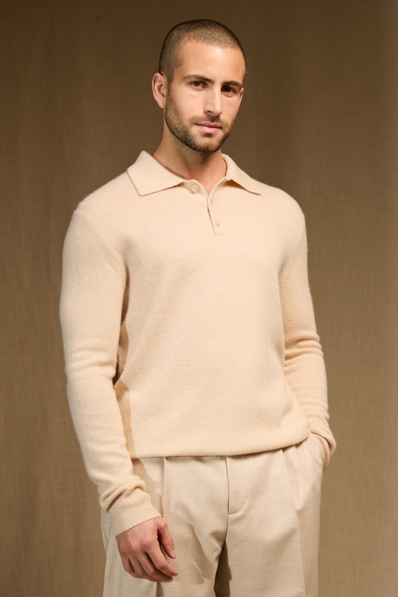 Polo 100 % cachemir - Cuello con tira de botones - Beige