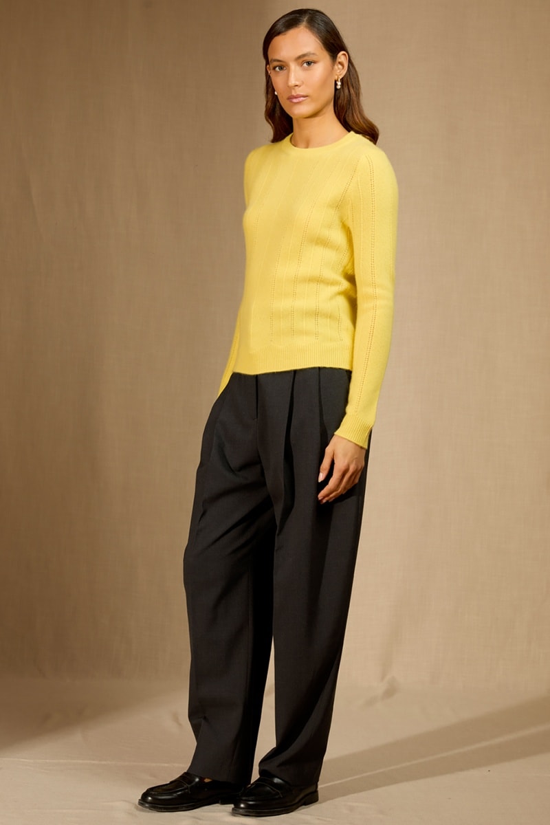 Jersey - 100 % cachemir - Cuello redondo - Amarillo