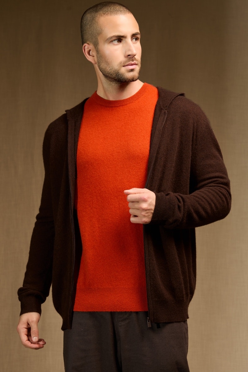 Cárdigan con capucha 100 % cachemir - Marrón