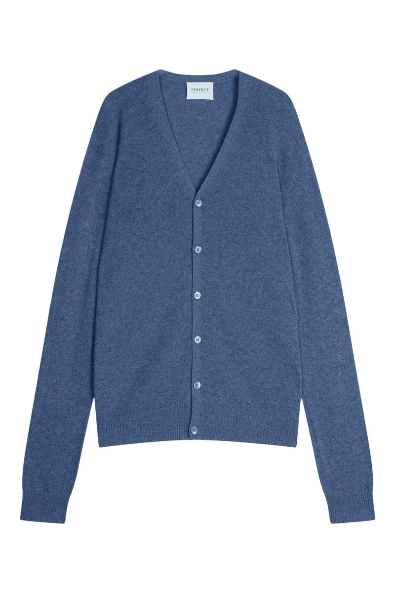 Cárdigan 100 % cachemir - Cuello de pico - Azul jaspeado