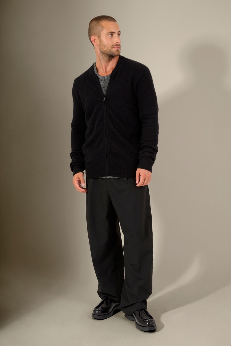 Cárdigan 100 % cachemir - Cuello ligeramente alto - Negro