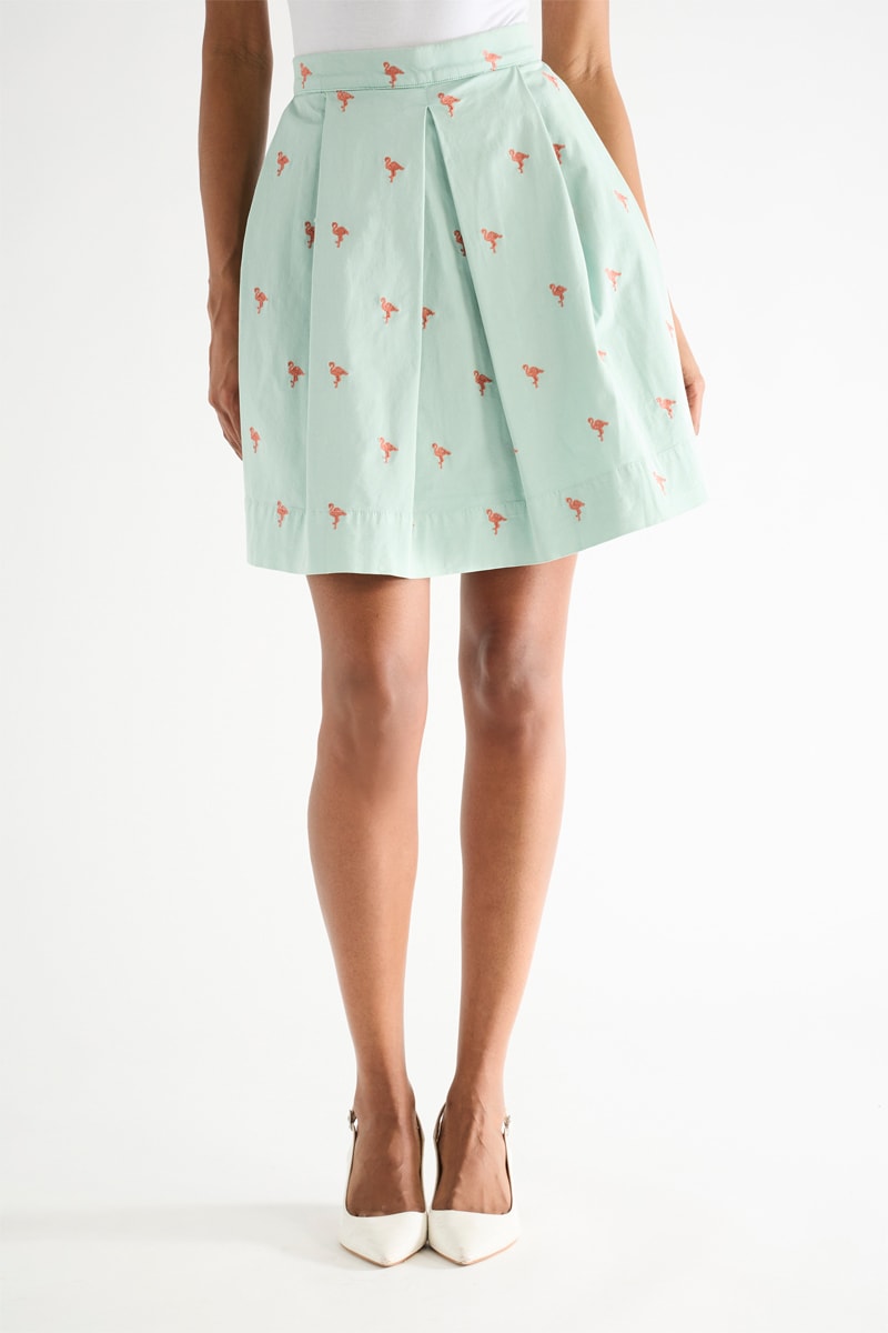 Falda evasé plisada.
