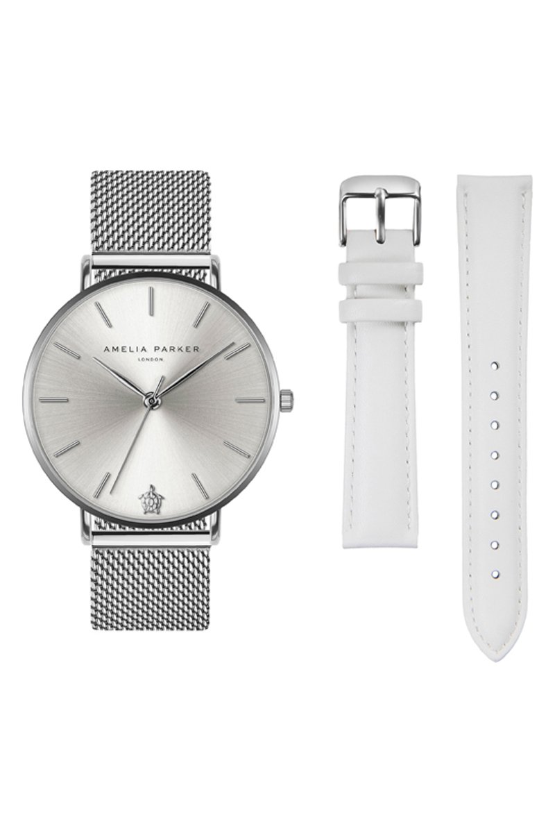 2 correas de recambio: 1 de piel granulada y 1 de malla milanesa.