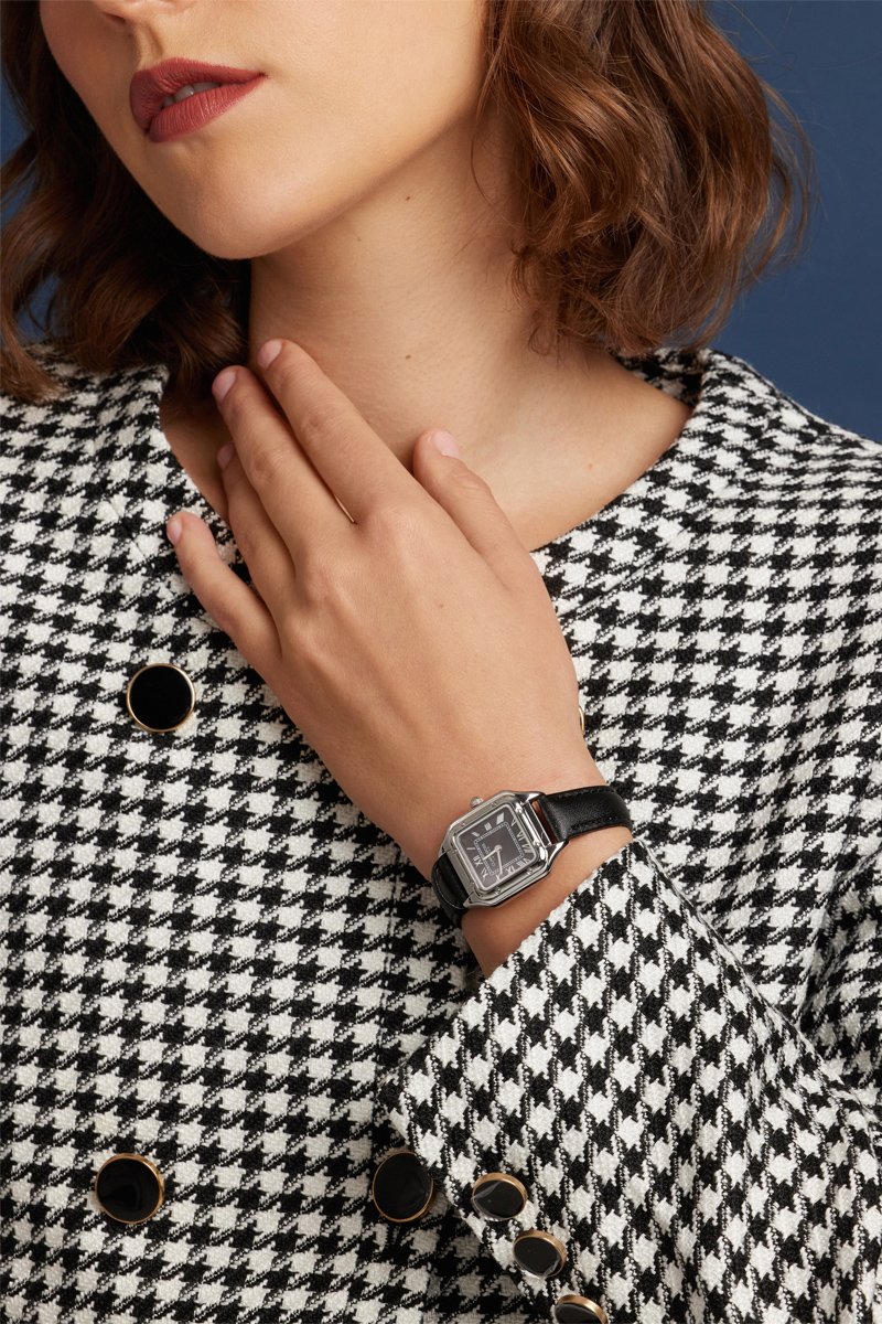 Reloj de cuarzo de piel bovina Old money - Negro y plateado