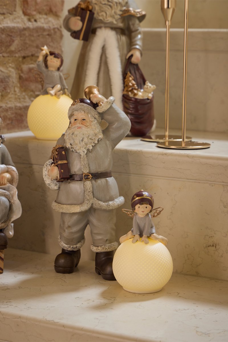 Feliz Navidad de Papá Noel Santavintage - 13 x 9 x 27 cm - Gris claro y blanco