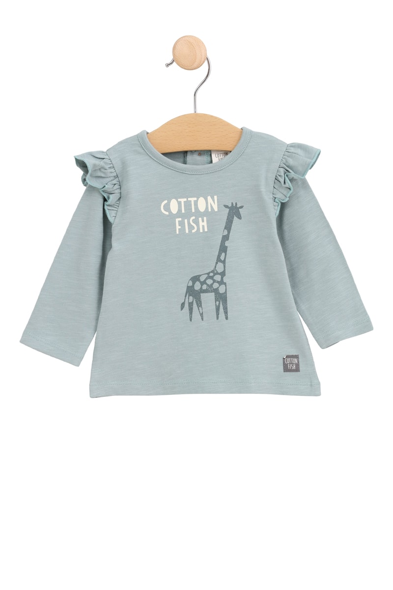 Estampado de jirafa y logo delante.