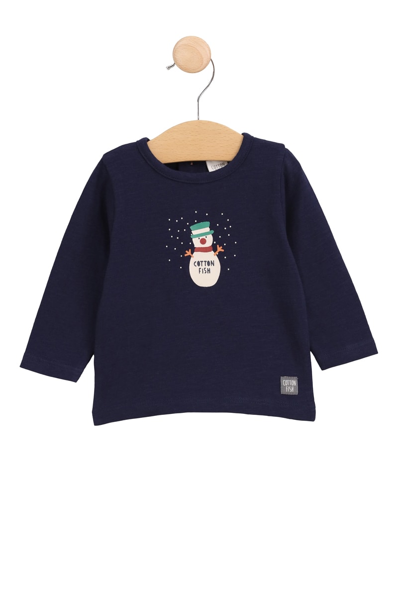 Motivo de muñeco de nieve, detalle en contraste con logo y logo delante.