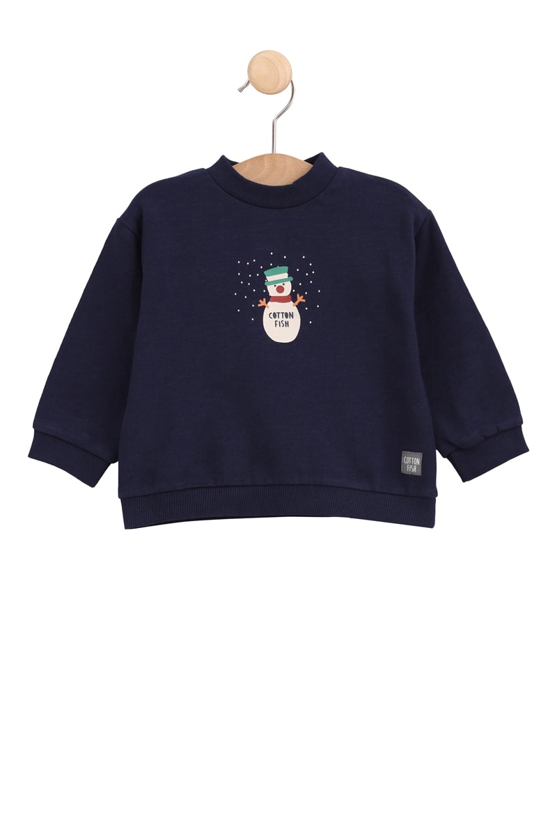 Motivo de muñeco de nieve, detalle en contraste con logo y logo delante.