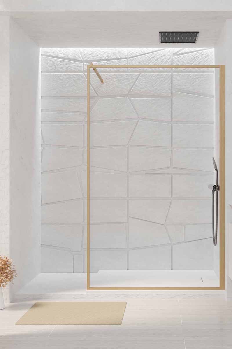 Elegante y natural, la mampara de ducha efecto madera WOODEN CONTOURING transformará tu ducha italiana en un remanso de paz. Con su acabado de madera efecto natural, esta mampara invita a relajarse, aportando un toque cálido y apacible a tu cuarto de baño. Su diseño inspirado en la naturaleza crea una atmósfera serena y relajante, ideal para un momento de bienestar diario.