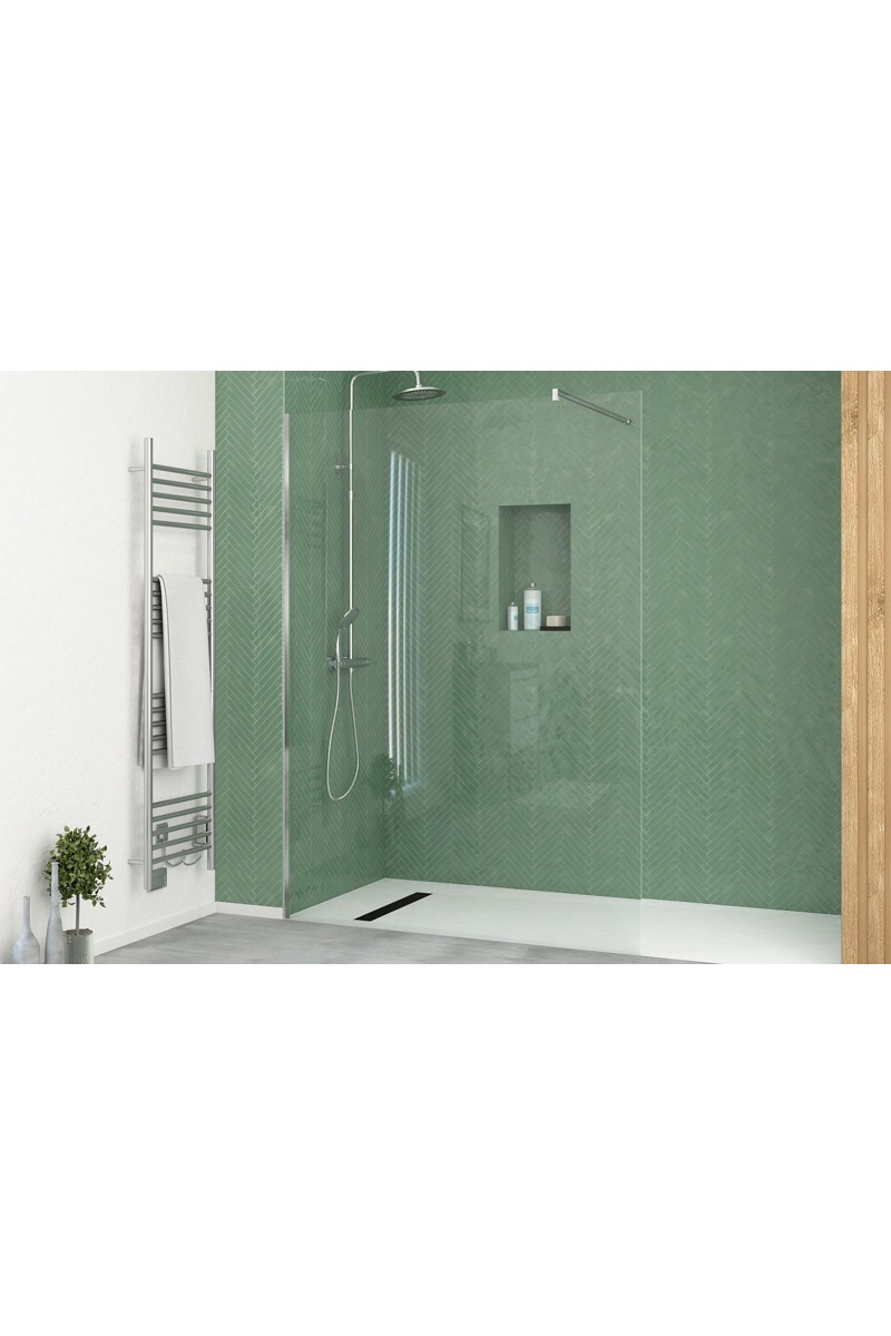 Mampara de ducha de vidrio templado.