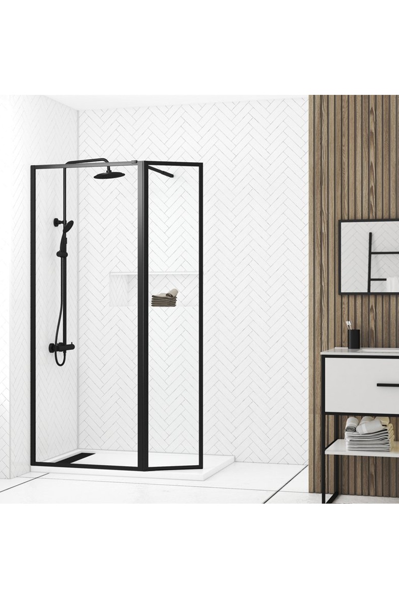 Pared y panel de 40 cm que gira a 180° evitando las salpicaduras de agua en el cuarto de baño.