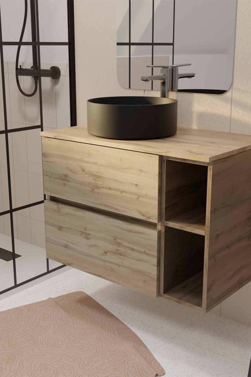 Mueble de cuarto de baño de 2 cajones con lavabo de cerámica Timber - 81 x 46 x 54 cm