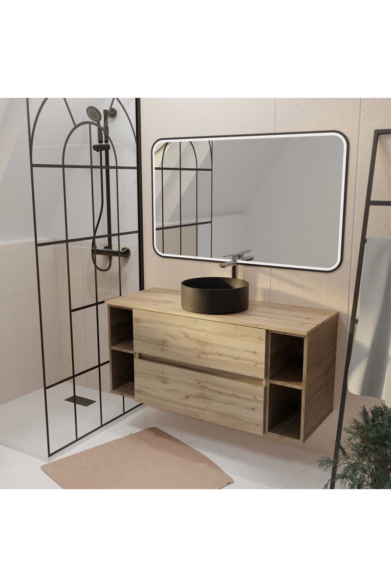 Conjunto de cuarto de baño con LED y lavabo de cerámica Timber - 2 piezas