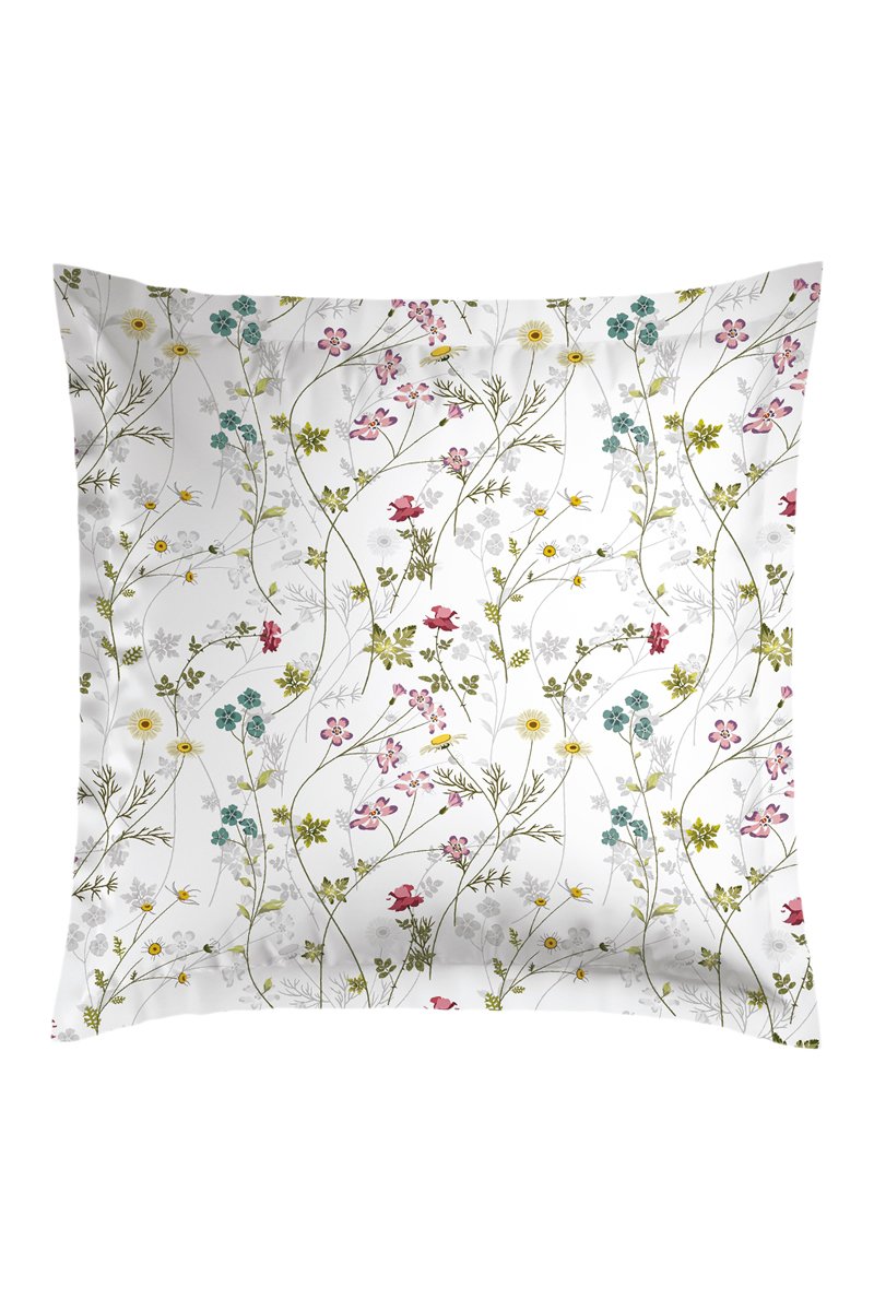 2 fundas de almohada de satén de algodón 80 hilos/cm² - Fleurs sauvages - Blanco y rosa