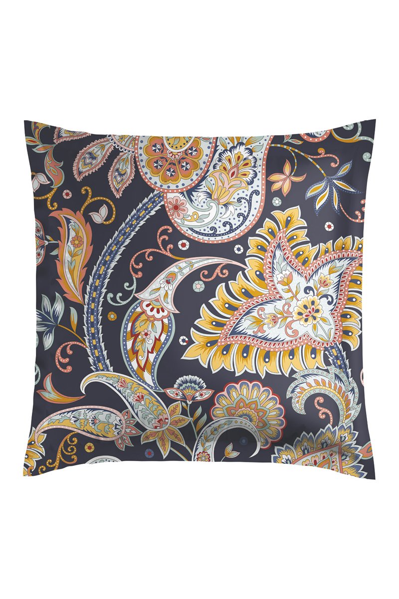 2 fundas de almohada de satén de algodón 80 hilos/cm² Boteh - Azul oscuro y dorado