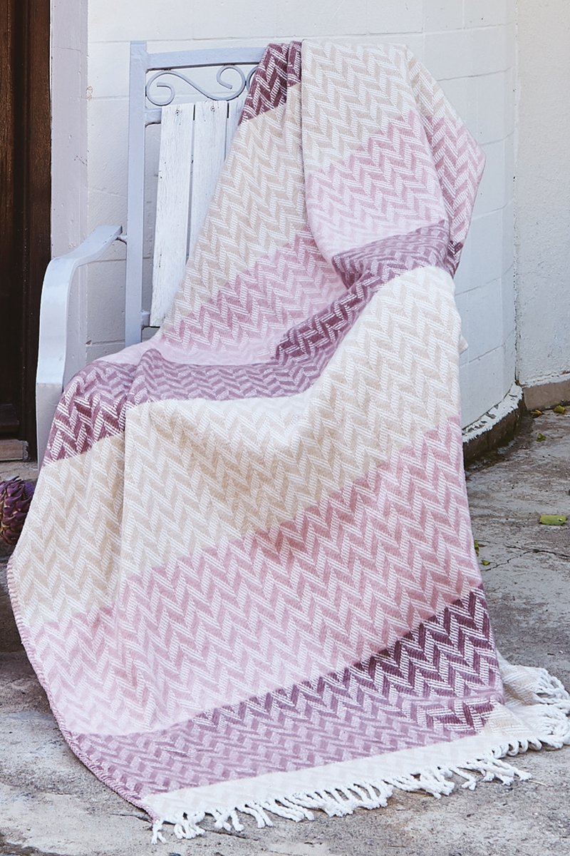Manta Chevron - Rosa y malva - 130 x 170 cm