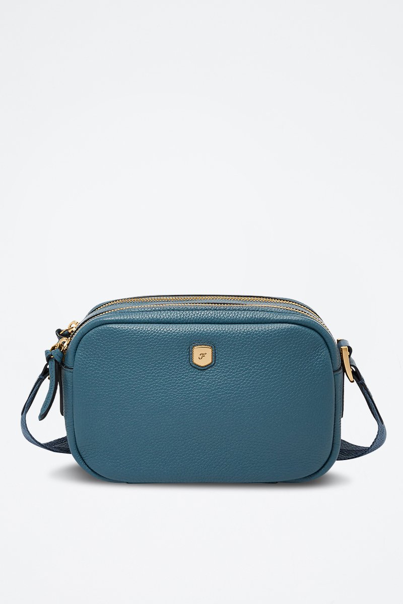 Bandolera de piel - Azul petróleo