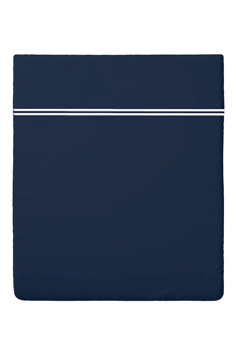 Sábana encimera de satén de algodón 79 hilos/cm² Cannes - Blanco y azul marino