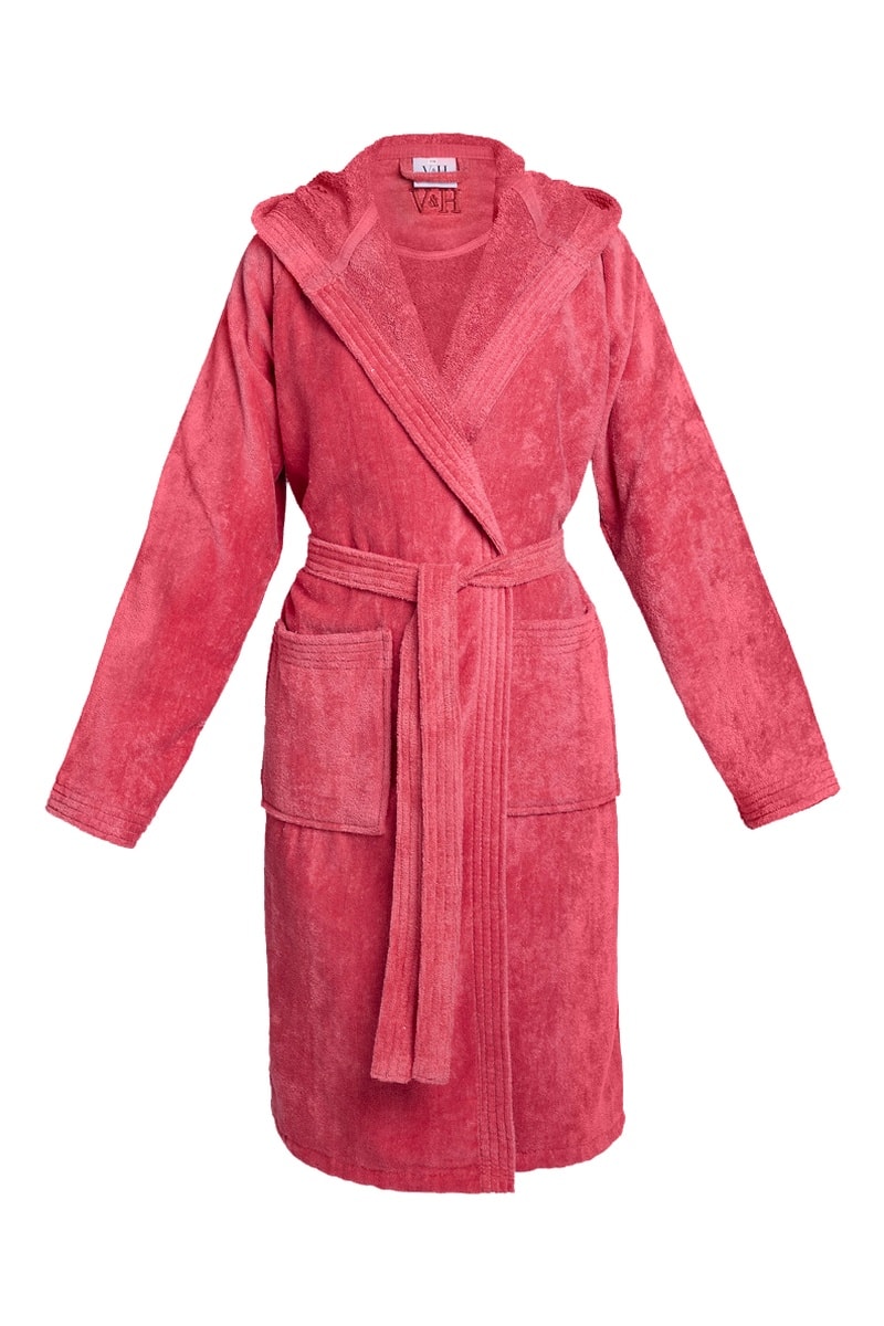 Albornoz de terciopelo con capucha Uni - Rosa viejo